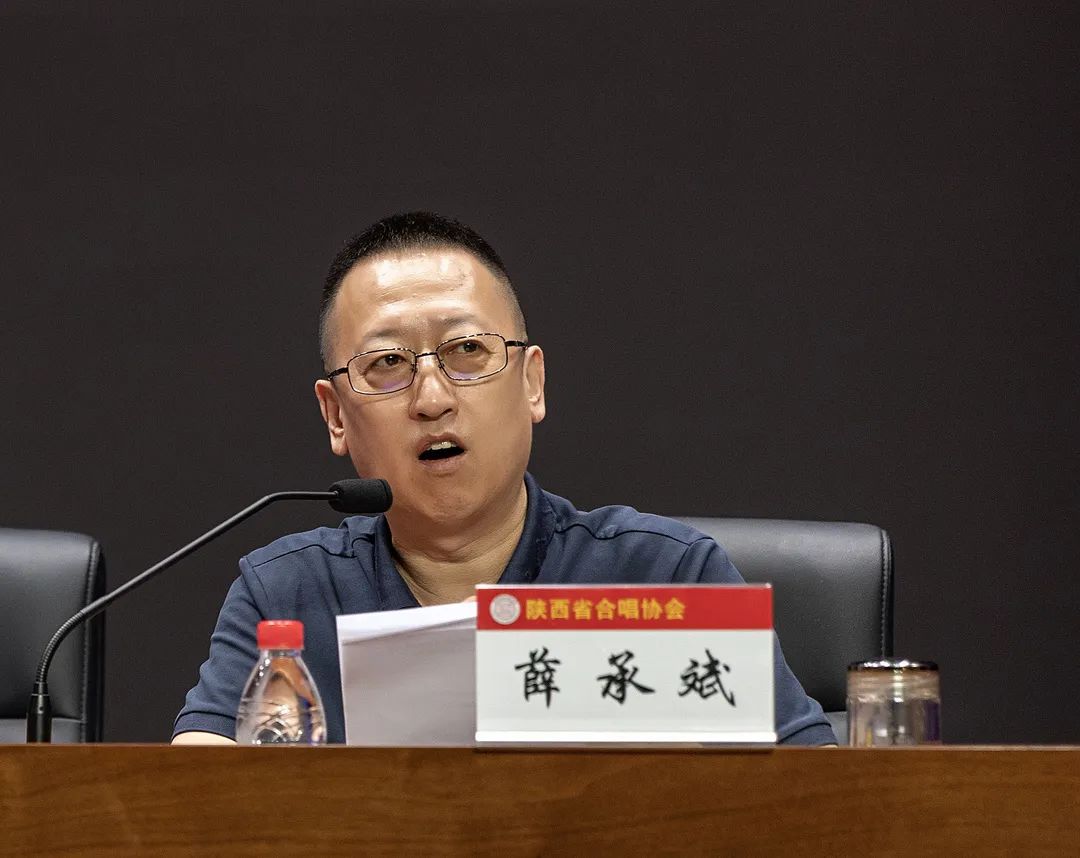2024年5月14日,为庆祝中华人民共和国成立75周年,响应5月9日中国合唱协会2024年重要活动推介发布会的主要内容,陕西省合唱协会(以下简称协会)在所属的近百支会员合唱团中抽调了约200人的演唱能力强、作风优良的优秀团员,组成“百人合唱团”,并于今日召开成立大会。协会会长李锐及副会长马亚非、郭玮、张进军、马西平、王拥军、华俊文参加了会议,会议由薛承斌副会长主持。